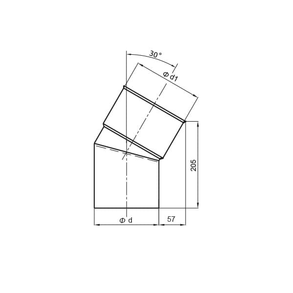 Element stosowany w celu zmiany kierunku przepływu spalin przy przyłączu kotła. Kąt 30 st.
