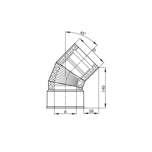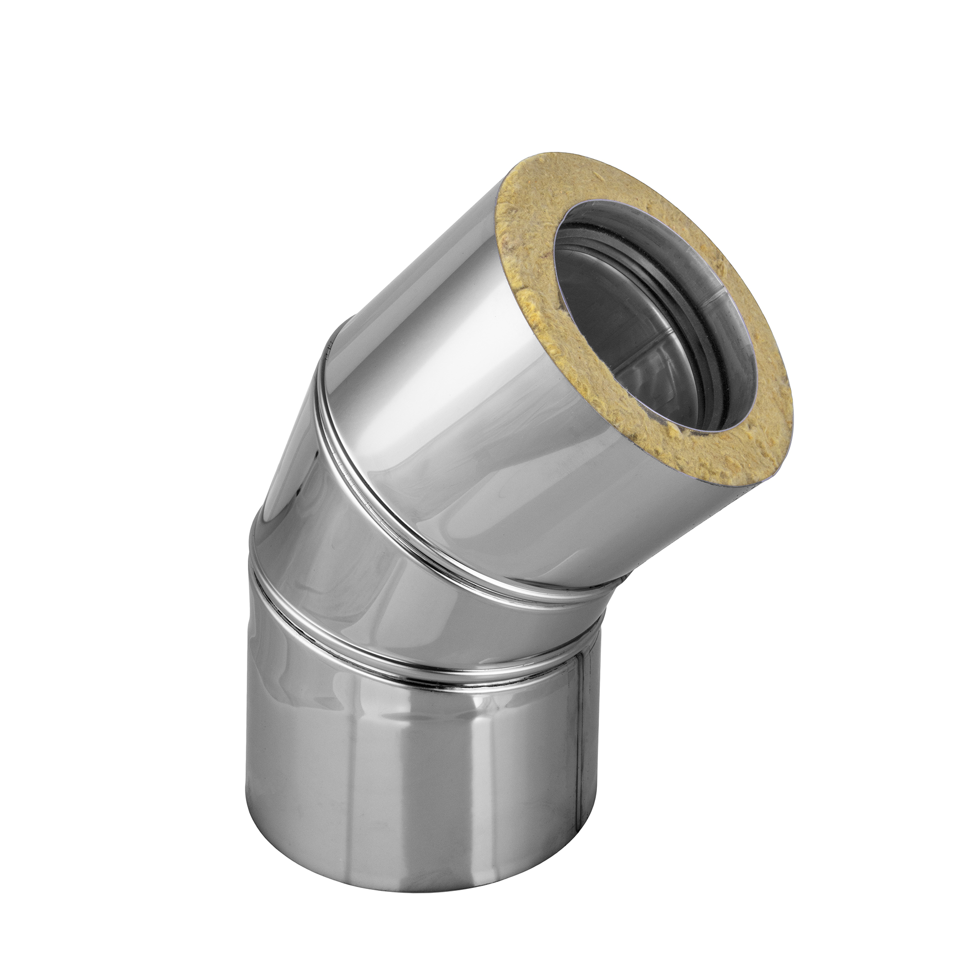 Element izolowany stosowany w celu zmiany kierunku przepływu spalin przy przyłączu kotła. Kąt 45º.