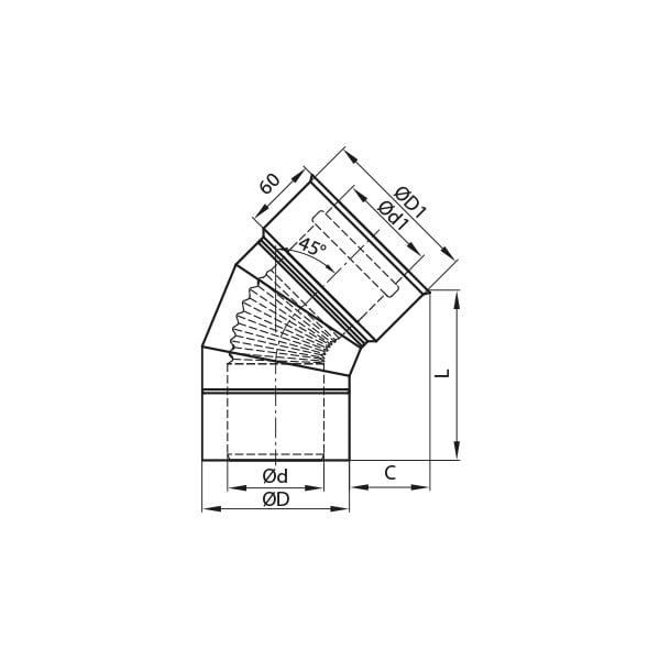 Stosowany w celu zmiany kierunku przepływu spalin przy przyłączu kotła. Kąt 45 st.