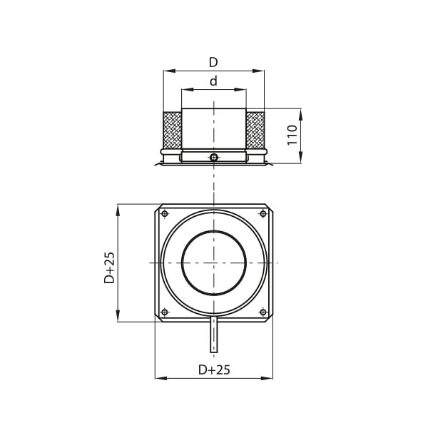 Podstawa komina z izolowanym denkiem służącym do odprowadzenia kondensatu lub wody. Element bazowy instalowany na fundamencie.