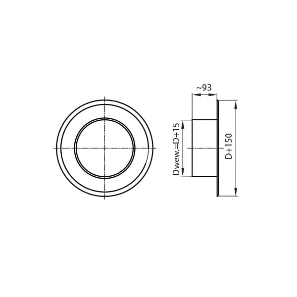 Element maskujący krawędzie otworu przez który przechodzi odcinek czopucha komina. Wymiar na średnicę zewnętrzną komina –D.