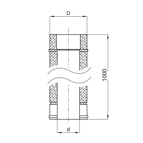Rura okrągła izolowana, spawana techniką plazmową, służąca do budowy odcinków prostych komina. Elementy łączone dzięki kielichowym końcówkom (60 mm –mufa) umożliwiającym swobodną dylatację. Długość 1m.