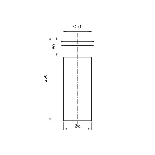 Rura okrągła spawana techniką plazmową, służąca do budowy odcinków prostych. Elementy łączone dzięki kielichowym końcówkom (60 mm –mufa). Długość 0,25m