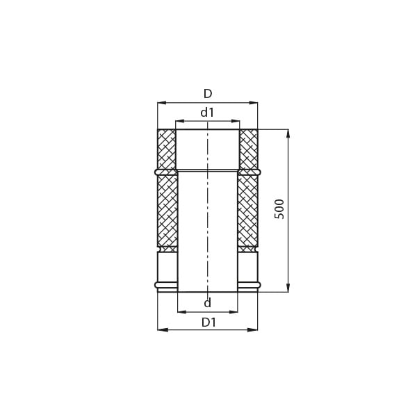 Rura okrągła izolowana, spawana techniką plazmową, służąca do budowy odcinków prostych komina. Elementy łączone dzięki kielichowym końcówkom (100 mm –mufa) umożliwiającym swobodną dylatację. Długość 0,5 m.