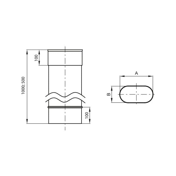 Rura owalna spawana techniką plazmową, służąca do budowy odcinków prostych wkładu kominowego. Elementy łączone dzięki kielichowym końcówką (100 mm –mufa) umożliwiającym swobodną dylatację wkładu. Długość 1 m.