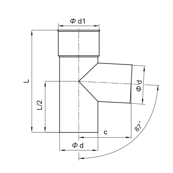 Element służący do podłączenia czopucha, czy wyjścia z kotła pod odpowiednim kątem z pionowym odcinkiem wkładu kominowego. Kąt podłączenia 87 stopni.